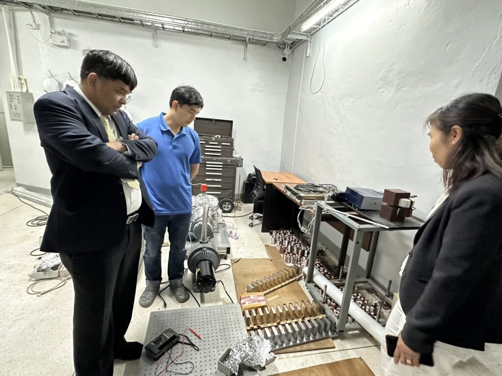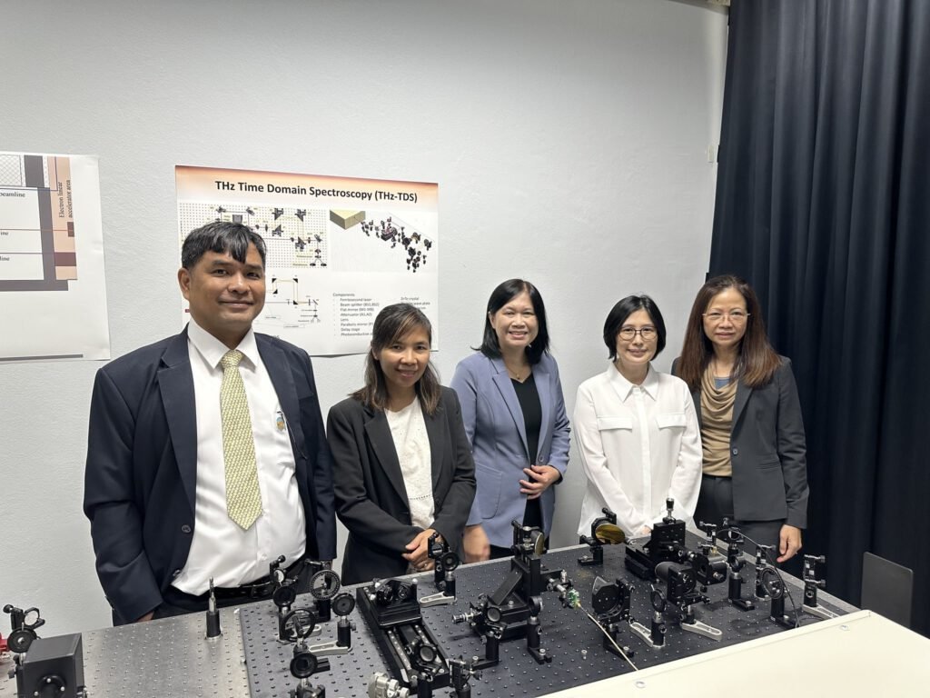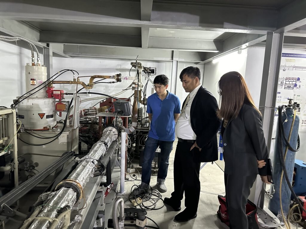 วันศุกร์ที่ 26 มกราคม 2567 รองศาสตราจารย์ ดร.ดวงมณี ว่องรัตนะไพศาล ผู้อำนวยการศูนย์ฯ ให้การต้อนรับ รองศาสตราจารย์ ดร.สาโรช รุจิรวรรธน์ ผู้อำนวยการสถาบันวิจัยแสงซินโครตรอน และคณะฯ ในโอกาสเข้าร่วมหารือการดำเนินงานร่วมกับศูนย์ความเป็นเลิศด้านฟิสิกส์ และเยี่ยมชมการดำเนินงานของห้องปฏิบัติการวิจัยเครื่องเร่งอิเล็กตรอนเชิงเส้น ซึ่งเป็นหน่วยวิจัยในเครือข่ายของศูนย์ความเป็นเลิศด้านฟิสิกส์ และศูนย์รวมผู้เชี่ยวชาญด้านเครื่องเร่งอิเล็กตรอนและเลเซอร์อิสระย่านอินฟราเรด/เทร่าเฮิรตซ์ เพื่อเสริมแกร่งระบบนิเวศการวิจัยขั้นแนวหน้าของประเทศไทย โดยได้มี ผู้ช่วยศาสตราจารย์ ดร.สาคร ริมแจ่ม หัวหน้าห้องปฏิบัติการวิจัยฯ รองศาสตราจารย์ ดร.จิตรลดา ทองใบ และคณะนักวิจัย ให้การต้อนรับและพาเยี่ยมชมสถานีทดลอง